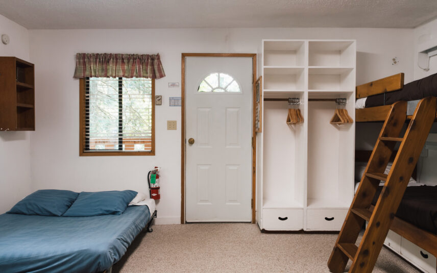 The 7 fully winterized Preedy Hamlet Cottages are tucked within the trees uphill from Preedy Lodge. Each cottage sleeps 4 to 8 guests and includes a water closet, shower room and 2 sinks. Each cottage has a slightly different layout but all have bunk beds with either drawers or open storage space.